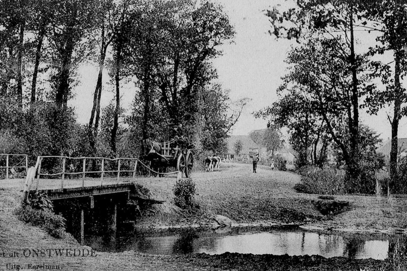 De ‘wedde’ van Onno door de Mussel Aa in Onstwedde was zelfs in 1906 nog altijd in gebruik, al was ’t toen dan voornamelijk voor het vee. De foto van de Havenstraat uit dat jaar, tegenover de ingang van de huidige ijsbaan, die bij deze aflevering is gevoegd moge dat bewijzen. (Leuk is 't trouwens, dat het pand waar achtereenvolgende families Draadjer in elk geval zo'n honderd jaar achtereen hun bedrijf hadden - nu Havenstraat 11 - in het midden van de foto op de achtergrond duidelijk te zien is).